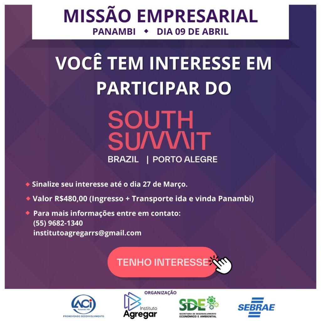 Está aberta a pré-inscrição para a Missão Empresarial de Panambi ao South Summit Brazil 2025, um dos maiores eventos de inovação e tecnologia do mundo! 📅 Data da missão: 09 de abril💰 Valor: R$ 480 (inclui ingresso + transporte ida e volta)📌 Prazo para manifestação de interesse: até 27 de março A missão está sendo […]