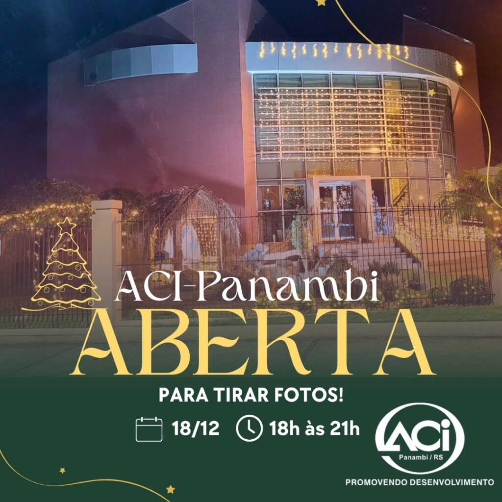✨🎄 O clima de Natal está no ar! 🎅✨ No dia 18/12, das 18h às 21h, a ACI Panambi estará aberta com um espaço especial e iluminado para você tirar fotos incríveis! 📸✨ Traga sua família e amigos e venha viver a magia do Natal conosco! 💫 ACI-Panambi – Promovendo desenvolvimento
