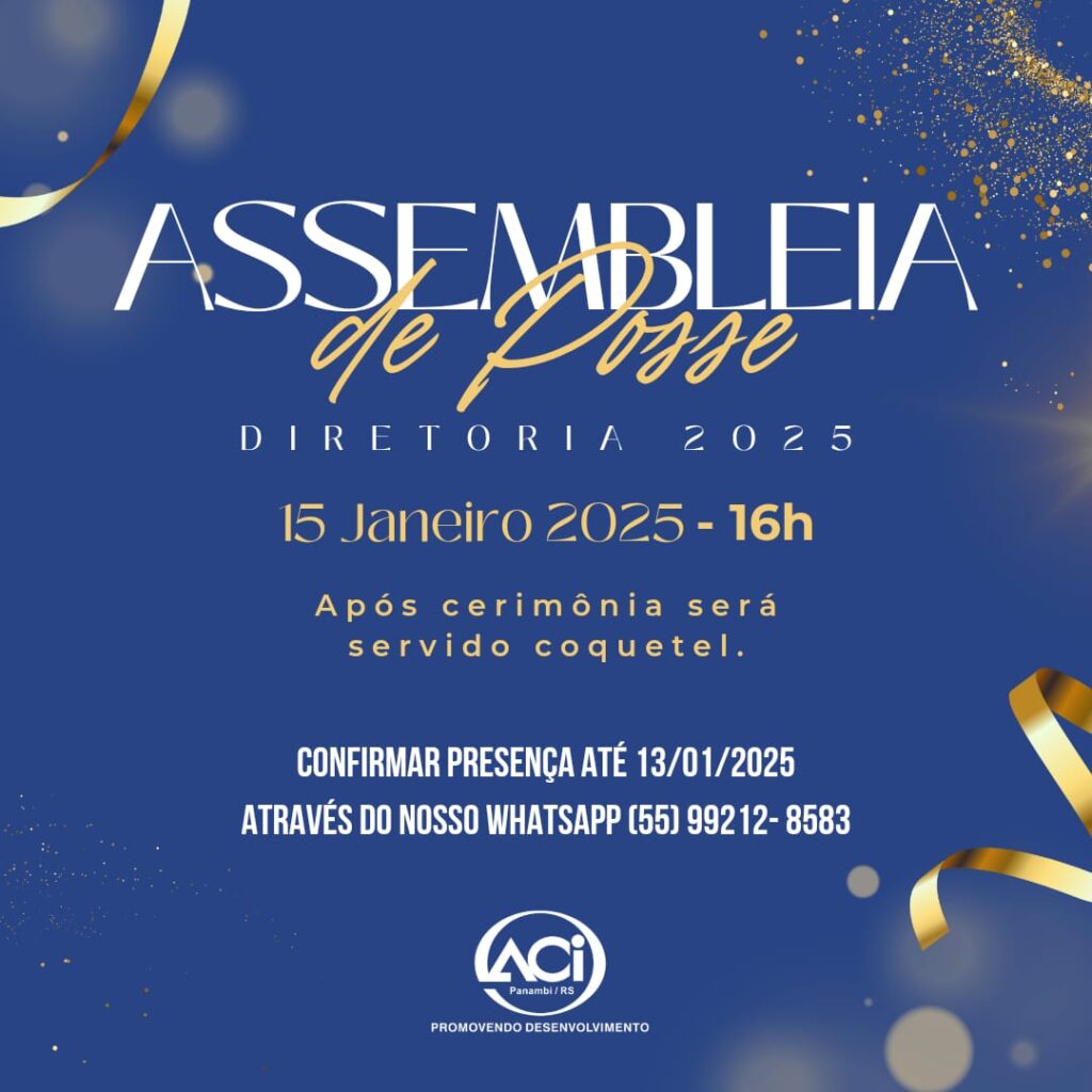 ✨ CONVITE ESPECIAL – ASSEMBLEIA DE POSSE – DIRETORIA 2025 A Associação Comercial e Industrial de Panambi têm a honra de convida-lo para a cerimônia de posse da nova diretoria para o ano de 2025. 📅 Data: 15 de Janeiro de 2025🕓 Horário: 16h Após a cerimônia, será servido um coquetel para confraternizarmos juntos este […]