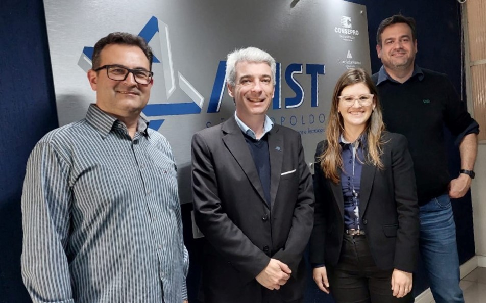 Na ocasião, Eduardo Sperb foi recepcionado por Daniel Klafke, vice-presidente de Tecnologia, Marcelo Mariani, vice-presidente de Indústria e Maiara Fangueiro, Gerente Executiva.